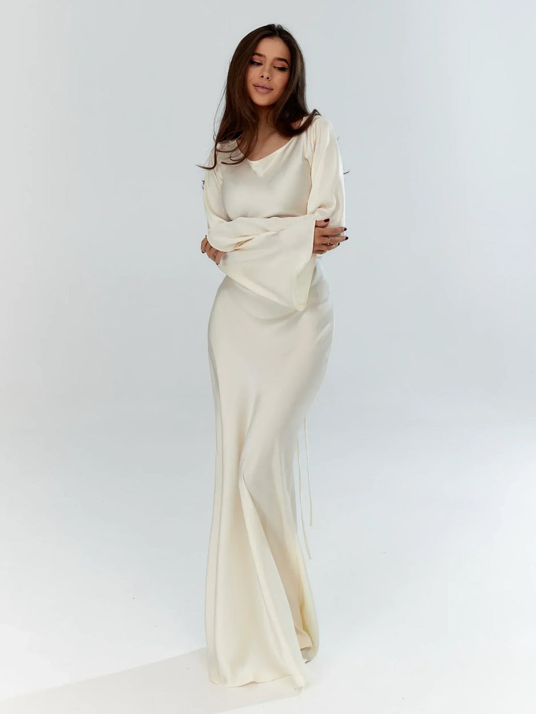 Long Sleeve Maxi Dress with Scoop Neck and Bell Cuffs