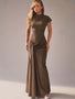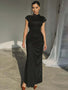 High Neck Ruched Maxi Dress with Cap Sleeves and Lace-Up Back