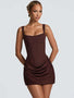 Mini hemline with draped ruching detail on the skirt