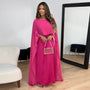 Relaxed, flowing silhouette with an attached layered cape overlay.