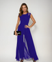 This jumpsuit has an overlay skirt and sleeveless construction with cut-out shoulder details.