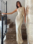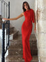 One-shoulder neckline with draped tie detail
