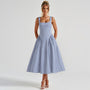 This dress has adjustable straps with a square neckline and a lace-up corset back.