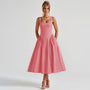 • Fitted bodice with structured seams • Gathered full skirt with midi length • Side pockets integrated into the skirt • Back lace-up closure with concealed zip fastening