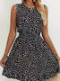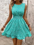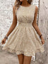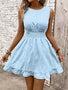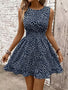 This dress has a sleeveless design with a crew neckline and smocked waist.