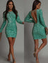 This dress has a crew neckline and long sleeves.