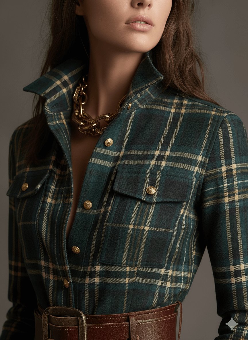 Plaid Maxi Dress with Button-Front Closure and Collared Neckline