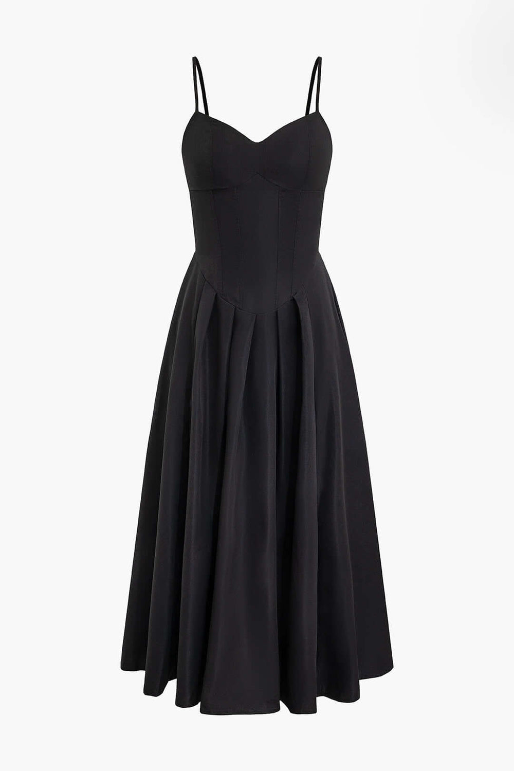 Sweetheart Neckline Corset Bodice Midi Dress with Spaghetti Straps