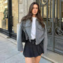Cropped Wool-Blend Jacket with Zip Closure and Chest Flap Pockets