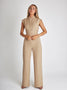 Cap Sleeve Wide Leg Jumpsuit with Mock Neck and Tie Waist